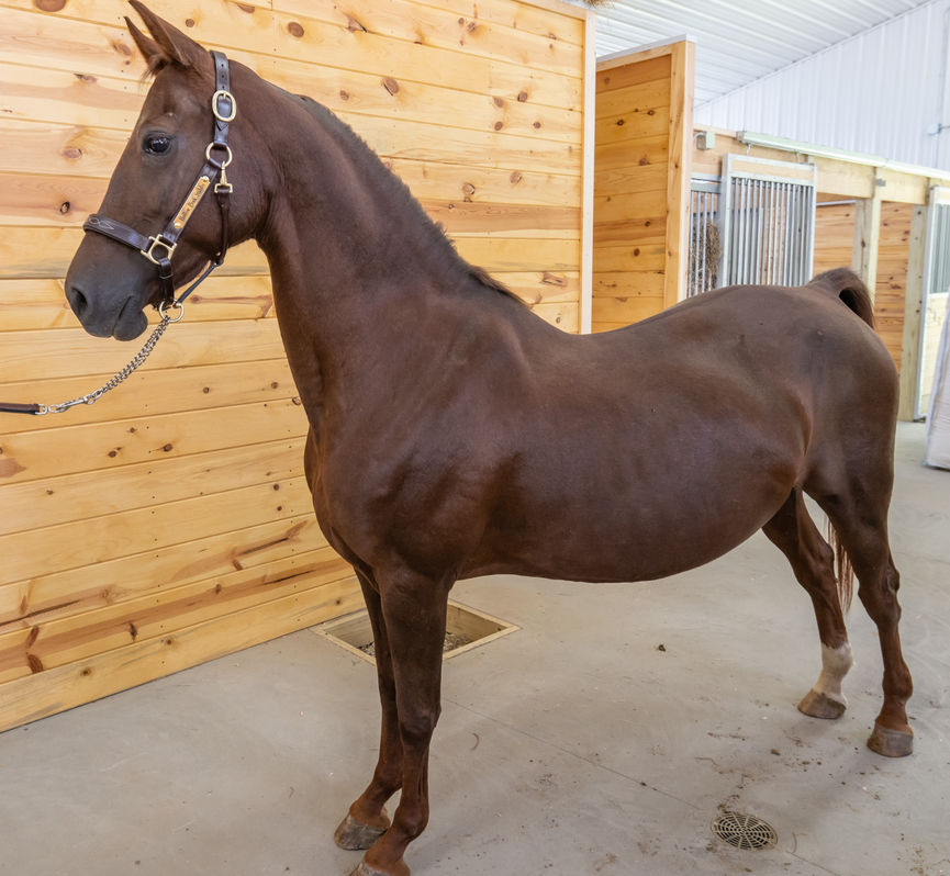 Chavalita is our top producer. Her sire, Hollybrook Stage Rage, passed his size and beautiful head and neck. Her dam, HVK Victoria's Secret, produced her full sister and multi-World Champion mare, Diana Victoria. Diana Victoria is currently part of the Dragonsmeade breeding program. Lita's offspring are good thinkers, have great dispositions, and trainability, all traits highly valued at our farm. Her first foal, TFF Devon, is a lovely breed representative. At her first Morgan Grand National in 2022, Devon was World Champion Western Dressage Basic Level Open, Grand National Champion Western Dressage Basic Level Test 3 & 4 Open, Reserve Grand National Champion Western Dressage Basic Level Test 2 Open, and Reserve Grand National Champion Western Dressage Intro Level Test 1 Amateur!